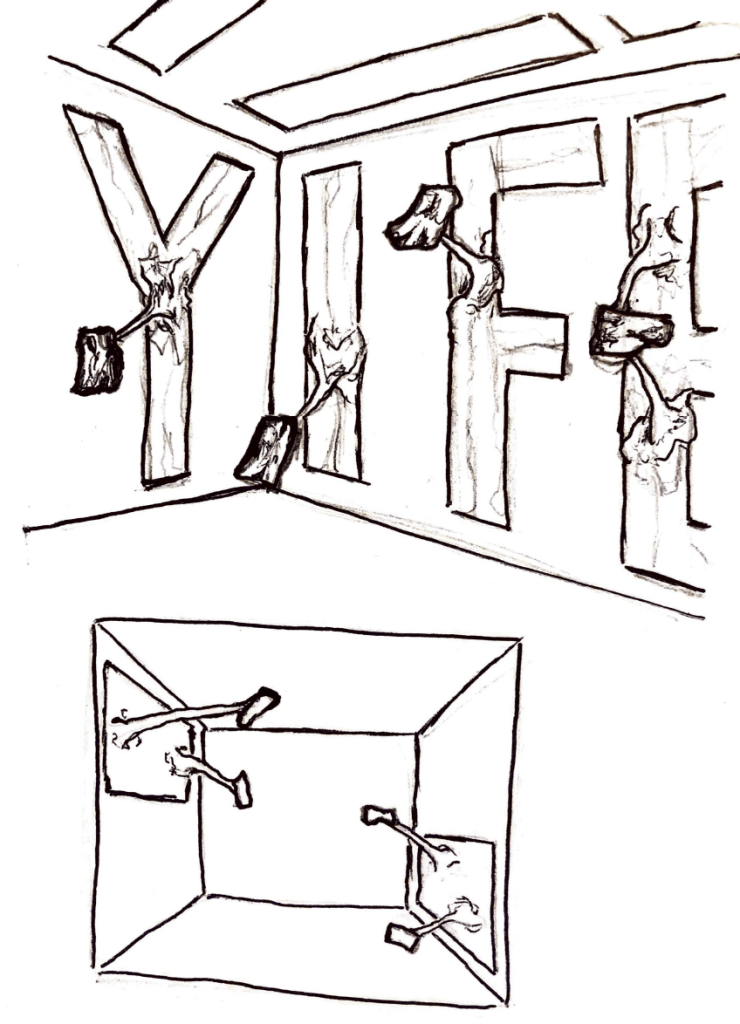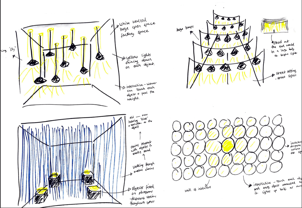 Overall I think the biggest thing I learnt during this project was that the majority of the other disciplines and subjects across the school all work in very similar ways in terms of the thought process and the way we generate ideas. It was also so useful to speak to students from other disciplines as although we work in very similar ways, anything we do differently can be something which I can learn and take on board. For example, during the idea development stage in which I was perfecting my idea, I decided to just start making in order to see exactly how my work would look when made and not just sketched, this was something which Craig along with a fashion design student spoke to me about and is something which I will definitely take on board as it really helped to push me in the right direction. Although many of the processes I used throughout this project, from research, to idea generation, to idea development, I use within every subject project I have, I think it really taught me the positives of physical making something. Within graphics I think I often get hung up on sketching over and over again, whereas sometimes, as I learnt in this project, just making it is the only way which i’ll be able to see what is effective and what isn’t.